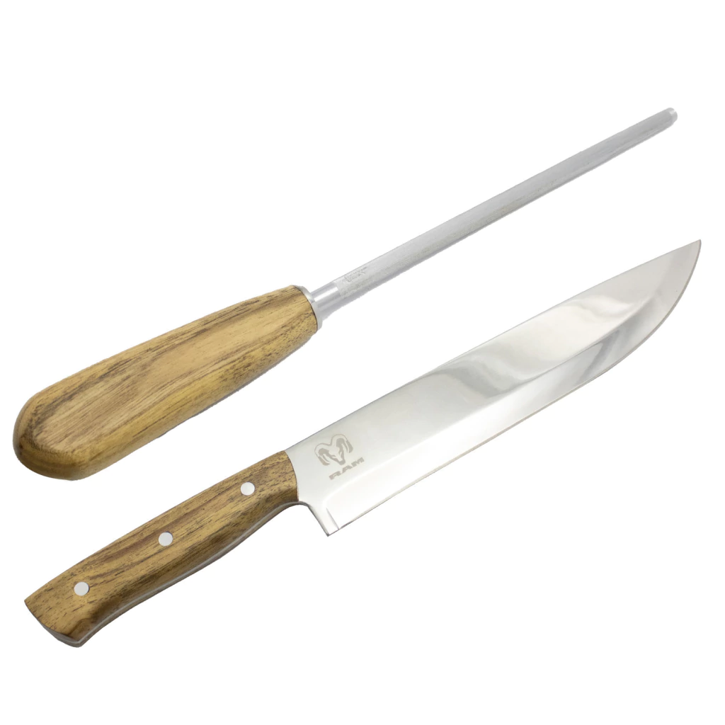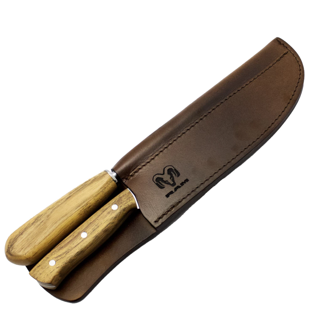 O Kit Leather Ram é a escolha perfeita para quem valoriza tradição, força e autenticidade na hora do churrasco. O conjunto conta com uma faca de churrasco com cabo de madeira nobre e lâmina em aço de alta resistência, personalizada com gravação a laser do icônico logo Ram. Acompanha chaira para manter o fio sempre afiado e estojo exclusivo confeccionado em couro legítimo, com o logo Ram em destaque. Um kit robusto, sofisticado e funcional, ideal para presentear ou para colecionadores apaixonados pela marca.